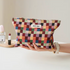 The playful checkered design and compact size make it a stylish and practical choice for organizing your beauty essentials on the go. Perfect for both daily use and travel, this bag seamlessly combines functionality with eye-catching style.